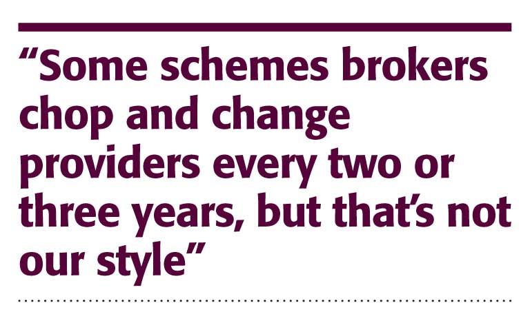 Some schemes brokers chop and change providers every two or three years, but that’s not our style.